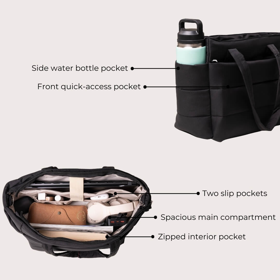 Whether you’re commuting, running between meetings, or carrying your entire life from home to office and back again, the Puffie Tote is designed for all-day comfort.